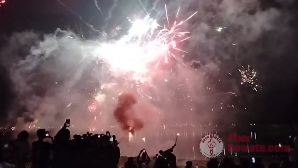Saat jarum jam mendekati pukul 00.00, kembang api dinyalakan satu per satu, memeriahkan langit malam Pantai Mertasari. Detik pergantian tahun ditandai dengan letusan kembang api besar yang membuat suasana semakin meriah. tim/dx