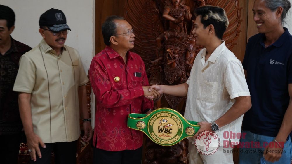 DENPASAR, OborDewata.com – Gubernur Bali, Wayan Koster, menyampaikan apresiasi dan rasa bangganya kepada petinju muda asal Buleleng, I Ketut Surya Dharma Adnyana, yang baru-baru ini mengharumkan nama Bali di kancah internasional. Dalam audiensi yang berlangsung di Rumah Jabatan Jayasabha, Denpasar, Senin (21/7), Gubernur Koster memberikan ucapan selamat secara langsung kepada Surya Dharma atas prestasinya meraih gelar WBC Asia Youth Super Flyweight Champion.