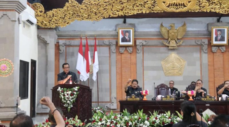 TABANAN, OborDewata.com – Bupati Tabanan, Dr. I Komang Gede Sanjaya, S.E., M.M., menghadiri Rapat Paripurna Penyampaian Pidato Sambutan Bupati Tabanan Masa Jabatan 2025–2030 di Ruang Rapat DPRD Kabupaten Tabanan. Senin (3/3). Rapat Paripurna ini turut dihadiri oleh Wakil Bupati Tabanan I Made Dirga, S.Sos., Ketua DPRD Kabupaten Tabanan I Nyoman Arnawa, jajaran Forkopimda, Sekda beserta para asisten Setda, kepala perangkat daerah, kepala instansi vertikal dan BUMD di Kabupaten Tabanan, serta para jurnalis dan tamu undangan lainnya.
