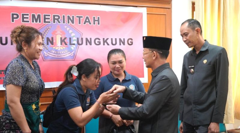 KLUNGKUNG, OborDewata.com – Pemerintah Kabupaten Klungkung terus mendorong pemberdayaan masyarakat melalui program peningkatan keterampilan kerja. Hal ini terlihat saat Bupati Klungkung, I Made Satria, didampingi Wakil Bupati Tjokorda Gde Surya Putra, memberikan pembekalan dan motivasi kepada dua calon Pekerja Migran Indonesia (PMI) yang akan berangkat ke luar negeri, Senin (27/4/2026), di Kantor Bupati Klungkung.