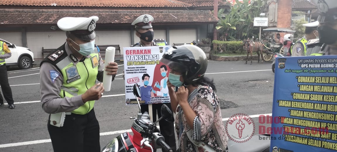 Pelaksanaan operasi patuh pada hari ke enam ini menyasar para pengguna jalan dan masyarakat yang melintas di Jalan Puputan Semarapura Klungkung, Sabtu (25/9/2021).