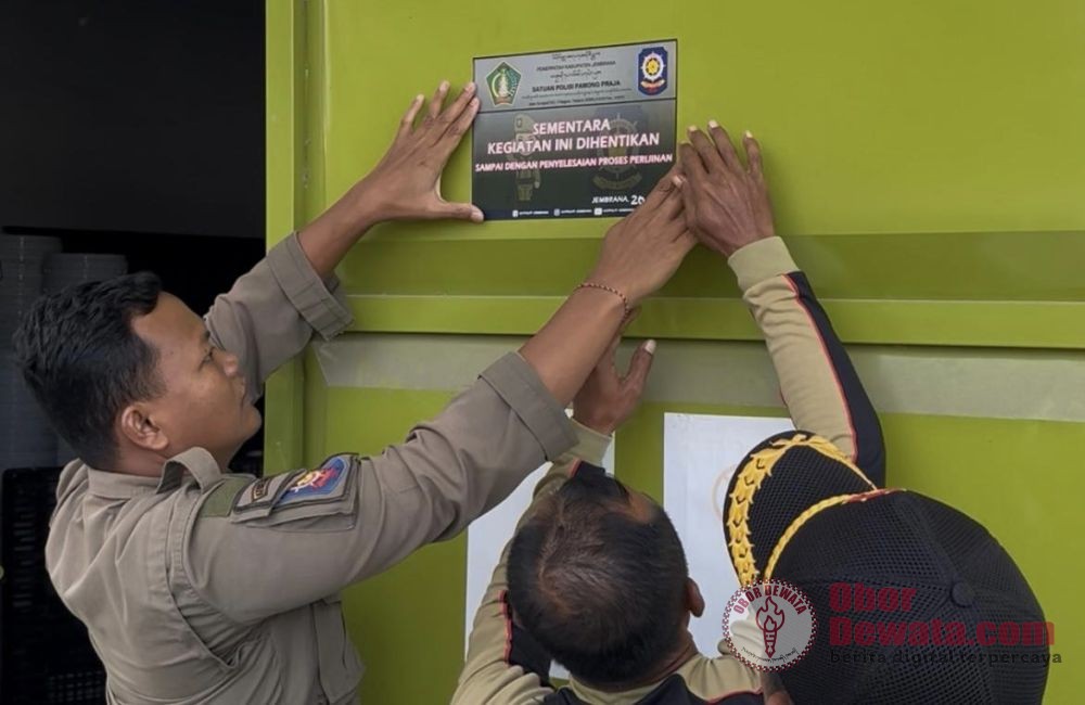 JEMBRANA, OborDewata.com– Satuan Polisi Pamong Praja (Satpol PP) Kabupaten Jembrana menghentikan aktivitas tambak udang di Banjar Yehbuah, Kecamatan Mendoyo, Kabupaten Jembrana. Penghentian ini terjadi pada Jumat (20/6/2025). Diduga, pembuatan belasan sumur bor di sana menyebabkan kekeringan sumur warga.