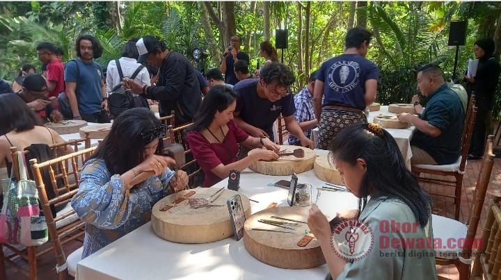 Pengelola Oka Kartini Art Centre Ida Bagus Putra Baruna mengatakan, menciptakan produk seni juga bisa menggunakan bahan atau material bekas (recycle) tidak hanya dari kulit binatang. “Agar kita tidak membuang – buang material,” ujarnya.