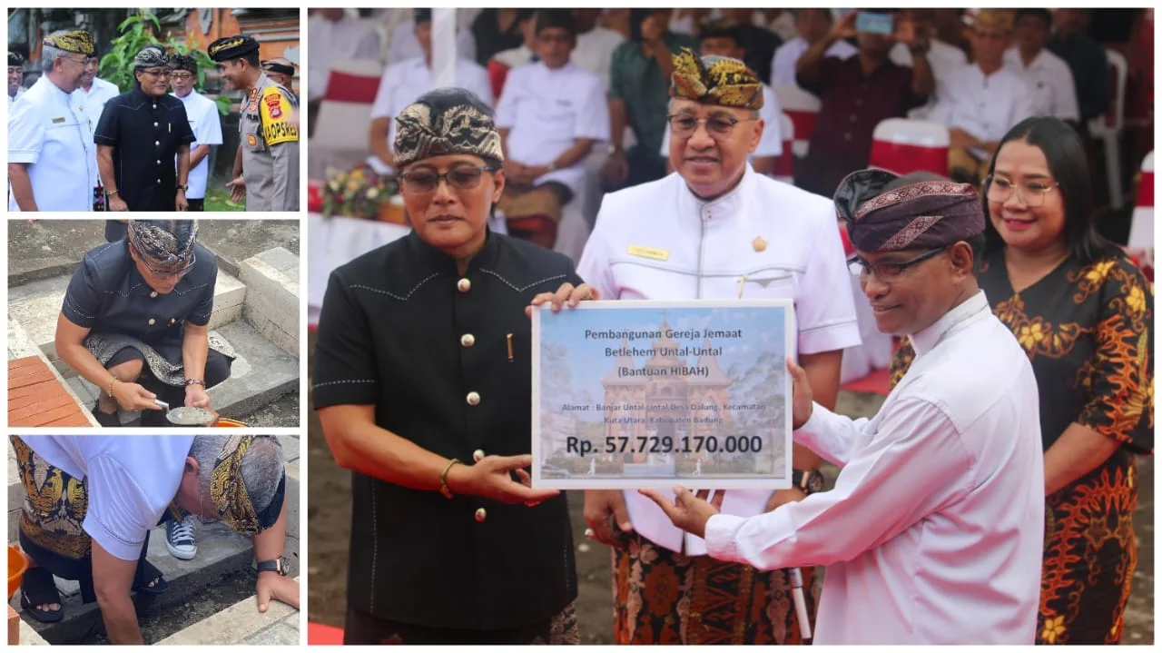 Dimana Bupati Badung Nyoman Giri Prasta menyerahkan hibah sebesar Rp 57.729.170.000 disaksikan Ketua DPRD Kabupaten Badung, Putu Parwata dan Kapolres Badung, AKBP Teguh Priyo Wasono untuk pembangunan Gereja Kristen Protestan di Bali Jemaat Betlehem Untal-Untal yang beralamat di Jl. Anom No: 4, Banjar Untal-Untal, Desa Dalung, Kecamatan Kuta Utara, Kabupaten Badung.