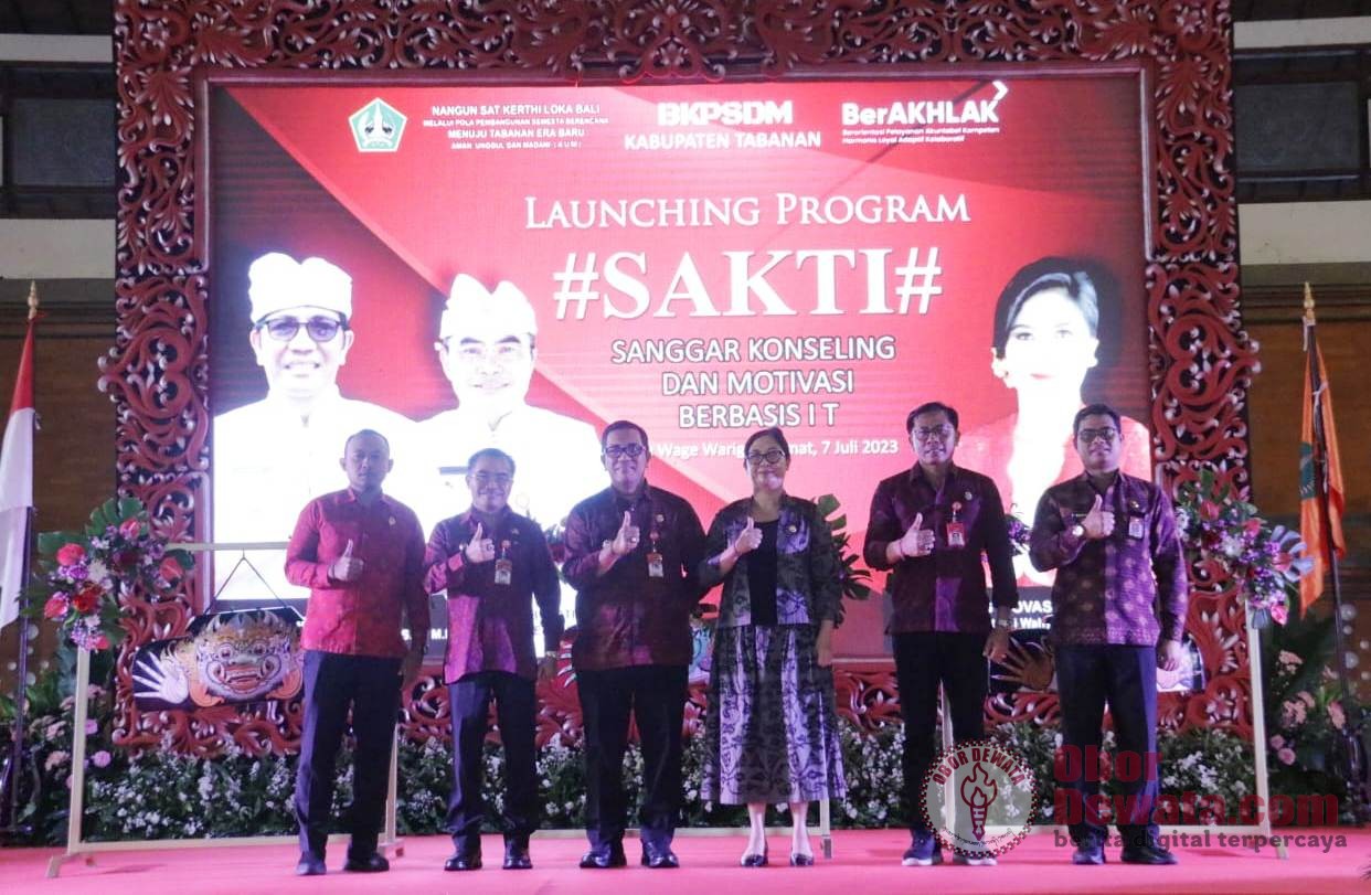 Inovasi “SAKTI” tersebut dilounching secara resmi oleh Bupati Tabanan, Dr. I Komang Gede Sanjaya, SE, MM, pada Jumat, (7//7/2023), di Gedung Kesenian I Ketut Maria Tabanan yang ditandai dengan pembunyian Okokan. Turut mendampingi, Ny. Rai Wahyuni Sanjaya, Wakil Bupati I Made Edi Wirawan, SE, Ketua DPRD Kabupaten Tabanan I Made Dirga diwakili anggotanya dan Sekda Kabupaten Tabanan.