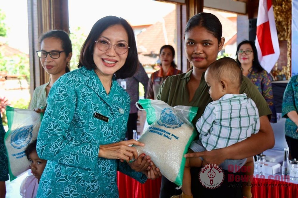 BADUNG, OborDewata.com – Pj. Ketua Tim Penggerak PKK Provinsi Bali, Ny. drg. Ida Mahendra Jaya secara berkelanjutan dan bersinergi melakukan kegiatan “Berkunjung dan Berbagi”. Memasuki awal Juli, Pj. Ketua Tim Penggerak PKK Provinsi Bali didampingi instansi terkait, yakni Dinas Kesehatan Provinsi Bali, Dinas Perikanan dan Kelautan Provinsi Bali, Dinas Sosial dan P3A Provinsi Bali, Dinas Pertanian dan Ketahanan Pangan, PMD Dukcapil Provinsi Bali, BKKBN dan PT. Bank BPD Bali, menyambangi Kabupaten Badung turun melaksanakan penyerahan bantuan, serangkaian untuk pencegahan dan penanganan stunting, di Banjar Tengah Kaler dan Banjar Tengah Kelod, Desa Gulingan, Mengwi – Badung, Jumat (5/7).