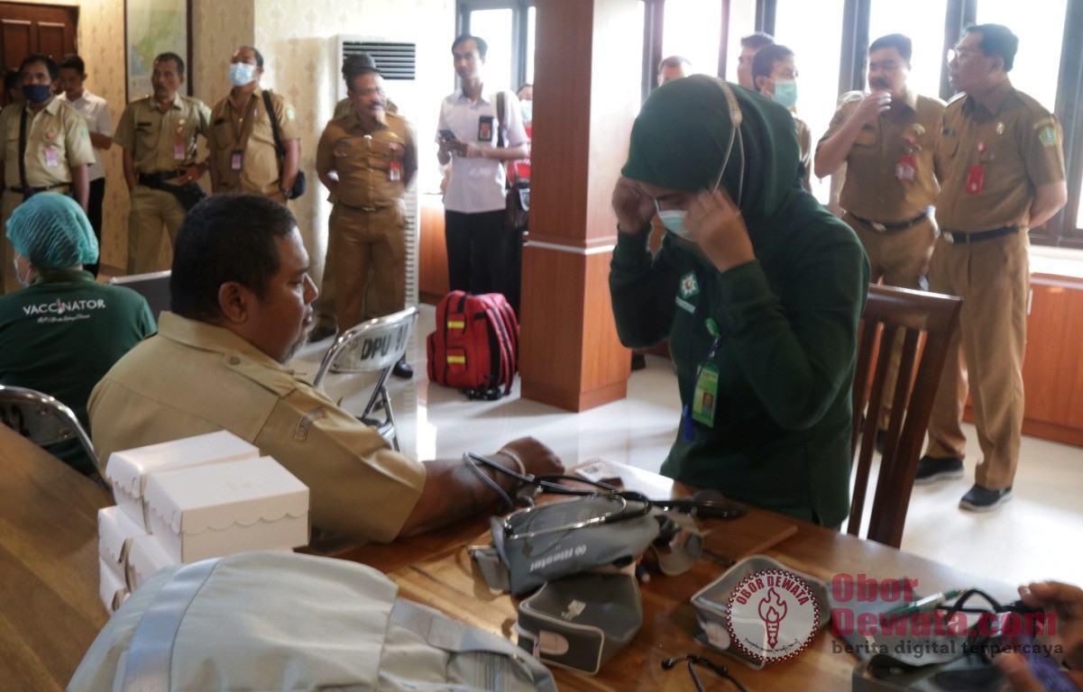 TABANAN, OborDewata.com – Seluruh masyarakat umum yang berusia 18 tahun ke atas yang memenuhi syarat di Kabupaten Tabanan sudah bisa melaksanakan Vaksinasi Covid-19 Booster kedua atau dosis keempat di puskesmas-puskesmas atau fasilitas kesehatan terdekat. Hal ini disampaikan Sekda Tabanan I Gede Susila, saat menghadiri Vaksinasi Booster kedua jajaran ASN di lingkungan Pemkab Tabanan pada Senin, (30/1) pagi.