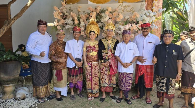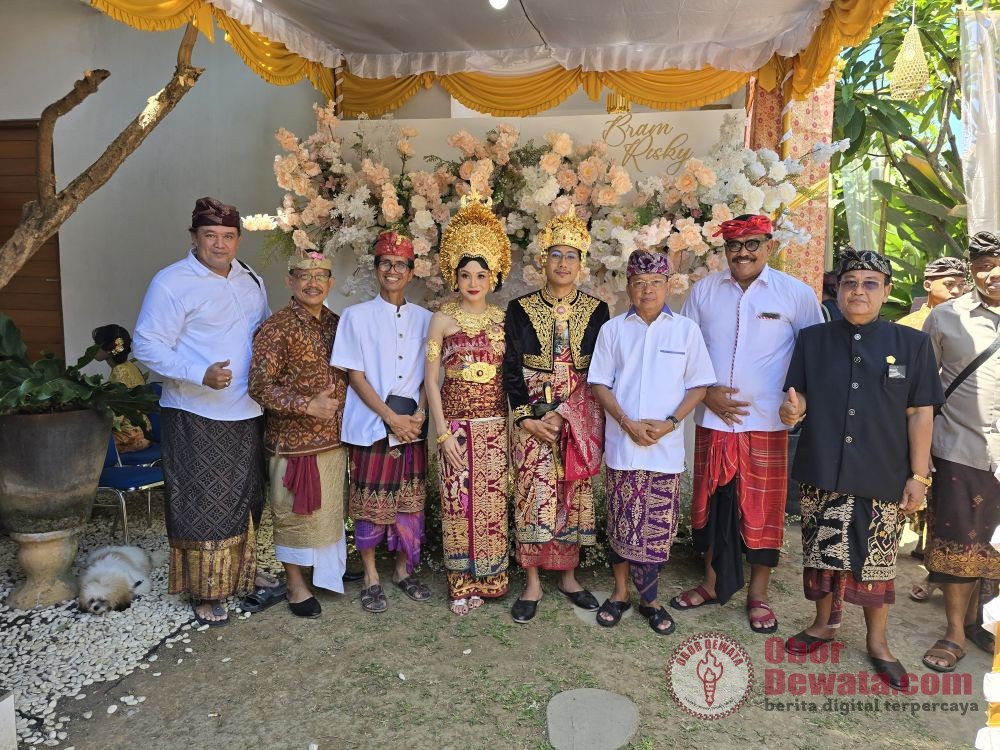 BULELENG, OborDewata.com – Ketua DPD PDI Perjuangan Bali Wayan Koster menghadiri acara pernikahan tokoh politisi Partai Demokrat Buleleng I Komang Nova Sewi Putra dengan Raden Ajeng Ayu Citra Resminingrum di Buleleng pada Jumat (13/9/2024).