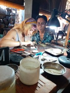 “Siapa pun bisa belajar, termasuk orang lokal. Ada paket belajar dasar membuat perak, mulai dari tiga hingga lima jam, dan silahkan kunjungi kami di Banjar Celuk, Kecamatan Sukawati, Gianyar no 27. Untuk belajar teknik dasar bisa ditempuh dalam dua sampai tiga hari, tergantung motif yang dipelajari,” jelasnya.