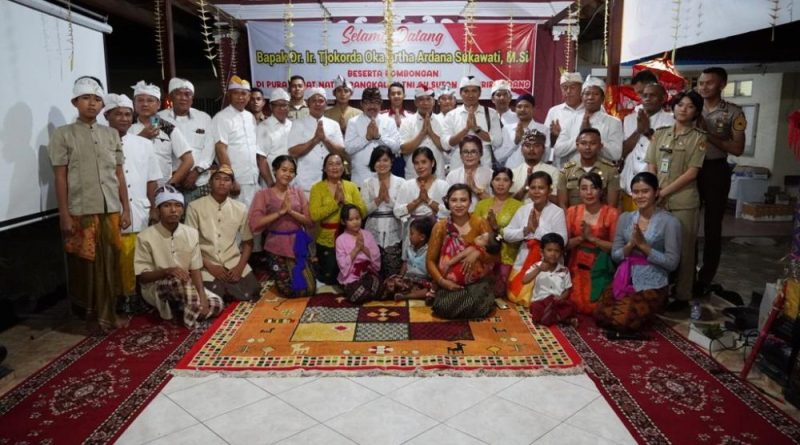 SUMBAR, OborDewata.com – Bertepatan dengan Tumpek Landep dan Hari Purnama Sadha Wakil Gubernur Bali Tjokorda Oka Artha Ardhana Sukawati (Cok Ace) melakukan persembahyangan serta menyapa warga Hindu di Padang bertempat di Pura Jagatnatha Padang, di Kawasan Lanud TNI AU Tabing, Kota Padang, Sumatera Barat pada Sabtu (3/6/2023).
