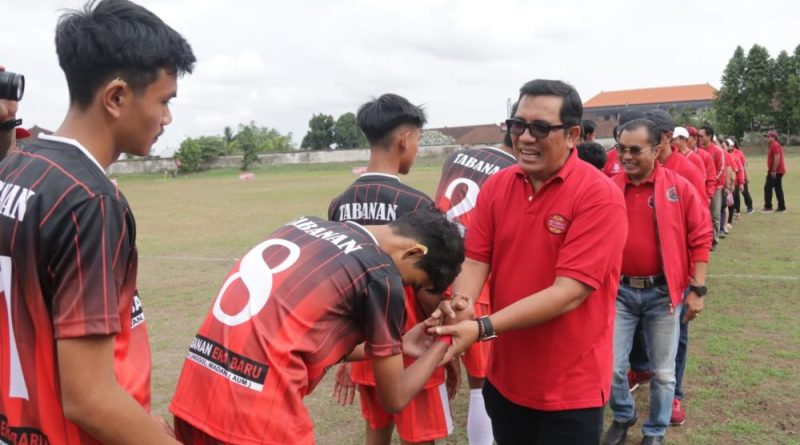TABANAN, OborDewata.com – Liga Kampung Sepak Bola PDI Perjuangan U-17 tahun 2023 yang mempertemukan Tim Sepak Bola Tabanan U-17 kontra Tim Sepak Bola Karangasem U-17 berlangsung meriah. Pertandingan yang berlangsung di Stadion Debes, Selasa, (19/9/2023) sore, semakin bertambah kemeriahannya dengan kehadiran Ketua DPC PDI Perjuangan Tabanan, Dr. I Komang Gede Sanjaya, SE, MM, yang turut menyaksikan laga dari awal sampai akhir.