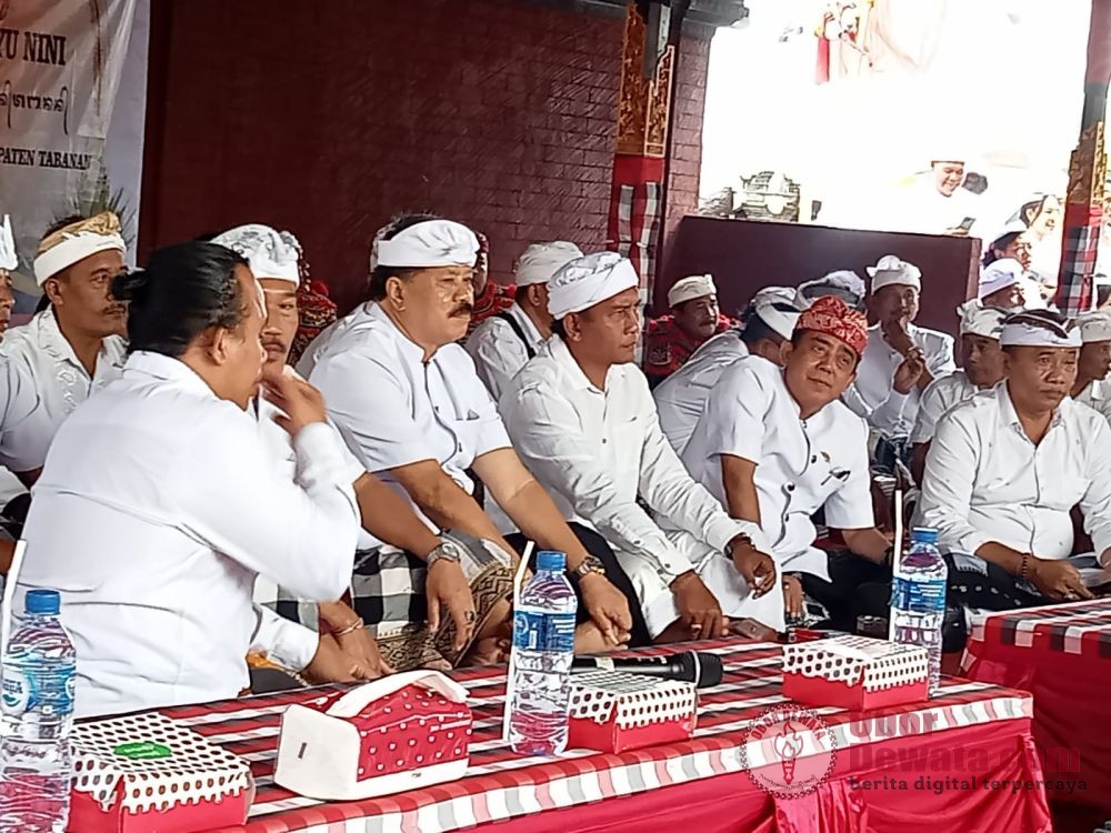 TABANAN, OborDewata.com – Ketua DPRD Tabanan I Made Dirga dan sejumlah petinggi “Banteng ” PDIP Tabanan mengadiri Karya Pedudusan Alit Ngusaba Desa Mapahayu Nini lan Masupati Awig di Desa Tangguntiti, Kecamatan Selemadeg Timur, Tabanan, Minggu (13 Agustus 2023).
