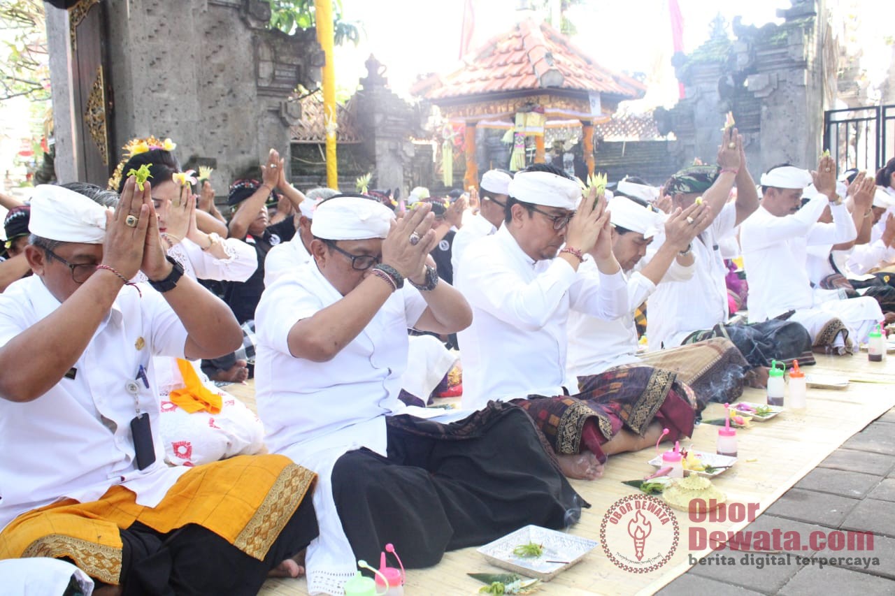 DENPASAR, OborDewata.com – Bertepatan dengan Purnama Jhiesta, Wraspati Kliwon, Wuku Klawu dilaksanakan Piodalan di Pura Swagina Taman Sari, Desa Dangin Puri Kangin, Kamis (4/5/2023). Turut hadir dan ikut serta dalam persembahyangan tersebut Wakil Walikota Denpasar, I Kadek agus Arya Wibawa didampingi Anggota DPRD Kota Denpasar, Eko Supriyadi, dan Camat Denpasar Utara, I Wayan Yusswara, serta tokoh masyarakat setempat.